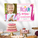 "Vamos a pisotear, chompar y rugir". ¡Damos la bienvenida con orgullo a todos los invitados de la fiesta de graduación preescolar de su hija en dinosaurio! Muestra este impresionante banner fotográfico moderno, elegante y personalizado para añadir a su día especial. Una imagen adorable, caprichosa, lúdica de dos bonitos, audaces, kawaii, brontosaurus rosados y divertida tipografía escrita a mano superponen un fondo rayado rosa claro y blanco a la derecha. La foto de su graduado está a la izquierda. Personalizar con la foto de su elección, su nombre, nombre de la escuela y año de clase, o un saludo especial. En esta moderna y dulce colección también hay disponibles invitaciones, tarjetas de agradecimiento, gorros, carteles de patio, posters, placas y otros artículos de graduación. Este encantador cartel le garantiza el tono justo y la preservación de los preciados recuerdos de esta ocasión histórica. Simplemente reemplace la foto de la plantilla por una de las suyas, escriba el nombre de su graduado, el nombre de la escuela y el año de clase, y podrá personalizar fácilmente este cartel de graduación de foto keepsake. Por favor, envíame cualquier pregunta o petición.