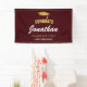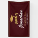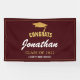 Pancarta minimalista de graduación de cimarrones rojos. El diseño presenta un tapón de graduación de oro purpurina con tipografía de escritura moderna y fondo de cimarrón rojo con borde cuadrado. Una forma sencilla de acoger a los clientes.