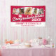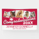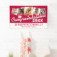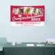 Pancarta personalizada de fiesta de colores de la escuela de graduación con un fondo rojo que se puede cambiar a cualquier color, 5 fotos del estudiante, una gorra de graduación y una plantilla de felicitaciones que es fácil de personalizar.
