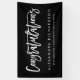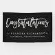 Esta bandera moderna y elegante dice "enhorabuena" en tipografía blanca de moda de la escritura, y tiene un punto para el nombre del graduado, el año, y el nombre de la escuela.