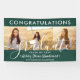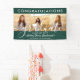 Add an elegant personalized touch to college or high school graduation party decorations with a custom 3 photo collage banner. The pictures and all wording on this template are simple to customize. The colors, font styles and overlay opacity can be changed with the Zazzle design editor tool. The dark green and white design features trendy handwritten script calligraphy, chic modern minimalist typography, and three photos of your choice, such as senior pictures or images from the commencement ceremony. This large graduation party sign can be hung on a wall to welcome guests to the celebration or used as a fun and stylish photo booth backdrop. Congratulations to the graduate!