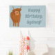 Añade un toque lindo a cualquier fiesta con este banner personalizado. Cuenta con un bonito ilustracion de una vaca escocesa de estilo Highland con una piel marrón rojiza agobiante puesta sobre un fondo azul claro.