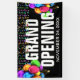 Nuevo banner de aventura de negocios con fondo negro, colorido confeti de celebración, globos y una gran plantilla de texto de apertura que es fácil de personalizar.