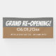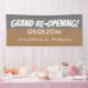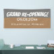 Señalización empresarial moderna con letra blanca en negrita sobre fondo de bloques de color urbanos de dos colores. Tres líneas de texto de personalizable para anunciar su reapertura y proporcionar detalles o mensajes especiales a sus clientes/comunidad.