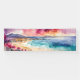 Gran Serenidad Morada Del Mar Mediterráneo. Este surrealista paisaje de color agua y tinta tiene una hermosa playa de arena desierta enmarcada por flores violetas en una colina baja. Al otro lado se encuentra un mar azul, con colinas bajas que se desvanecen a lo lejos y nubes violetas que se mezclan suavemente, creando así una tranquila y relajante vista de la costa.