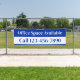 Grandes oficinas comerciales al aire libre alquilando banners publicitarios de negocios inmobiliarios en una plantilla en línea que usted puede personalizar para un agente inmobiliario, propietario o agente de arrendamiento.