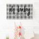 Decoración moderna de fiesta para la ducha de bebé neutra en función del género. Patrón de gingham gris en el fondo. El texto dice "oh baby" en letra de escritura moderna. Puede agregar el nombre de la mommy-to-be y la fecha del evento. Diseño sencillo y minimalista.