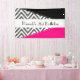 Añada un toque personal a su celebración de cumpleaños con estos artículos fiestas de diseño y memorables. El diseño presenta un patrón de zigzag (chevron) en color gris y blanco con parches de color rosa y negro.