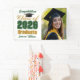 Customize your own green and gold high school Class of 2026 graduate photo banner for a graduation party. Cool varsity letters for the year on great custom commemorative decor for seniors. Classic typography next to your student photograph.