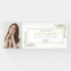 Con delicadas hojas de color agua verde, este banner de felicitaciones de la fiesta de graduación de la moda puede ser personalizado con sus detalles de foto de grado y celebración. Diseñado por Thisisnotme©