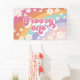 Banner de primer cumpleaños Groovy One Retro Rainbow con margaritas.