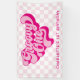 Crea tu propio cartel de tipografía rosa y rosado "Groovy One" de estilo retro para la fiesta de primer cumpleaños de tu bebé. Puede cambiar ambos tonos de rosa en el gráfico vectorial de texto. Agregue texto del sistema para crear su propio diseño personalizado. Personalizar los colores rosa y blanco pastel en el arte vectorial de patrón de tablero de ajedrez.