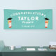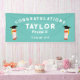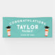 Banner de felicitación de grado de la escuela creativa de farmacia para graduación farmacéutica con botellas de prescripción con gorras. Para personalizar el texto de edición para añadir nombre y año o personalizar de otro tipo.