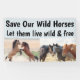 Nuestros mustangs salvajes son íconos estadounidenses de Occidente. Merecen vivir salvajes y libres en las tierras en las que nacieron. Pero en cambio, nuestros caballos salvajes están siendo acorralados a un ritmo sin precedentes hasta el punto de extinción en el campo, y ahora necesitan nuestra ayuda. Únase a nuestra Campaña Salvemos a nuestro Caballo Salvaje y envíe una carta o postal a su congresista, sus senadores, el presidente de los Estados Unidos, el Servicio Forestal de los Estados Unidos, la oficina regional del BLM en su área y el jefe del Departamento del Interior. Díganles que nuestros caballos salvajes no merecen los inhumanos y crueles redadas de helicópteros, nuestros caballos salvajes no merecen ser separados de sus miembros durante el resto de sus vidas, nuestros caballos salvajes merecen vivir en nuestras tierras públicas en sus áreas de manejo de manadas con acceso al agua, y mantener al ganado, petróleo y minería lejos de los Caballos Salvajes y Burros HMA's. Todos los beneficios de las ventas de mis productos Save Our Wild Horses se donan al Engler Canyon Ranch y al Evanescente Mustang Rescue.