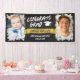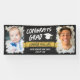 Celebra tu graduación con este cartel de felicitaciones con antecedentes en pizarra y dos fotos del graduado, uno de ellos siendo un bebé y uno de él a su edad actual. CONGRATA GRAD con un tipo de letra angustiado y el nombre del grad en un cartel amarillo. Banner de graduación de Guay personalizado con fotos de tu hijo y su nombre con una fuente angustiada.