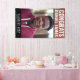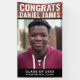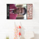 Este cartel de graduación muestra una foto del graduado en el medio. Arriba se lee en una simple tipografía blanca "Felicitaciones" con un nombre en un fondo de ladrillo rojo Debajo está el nombre de la clase y de la escuela para que puedas personalizar en blanco sobre negro. ¡Felicidades por tu graduación! Diseñado por la artista Susan Coffey.