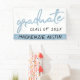 Moda de graduación de la fiesta de superposición de la plantilla con acentos en una sofisticada paleta blanca y azul de huevo. El diseño presenta una tipografía "graduada" de escritura con letras azules a mano sobre un fondo blanco junto con el nombre y el año de graduación del graduado. ¡Una gran manera de honrar tu educación media elemental, secundaria o universitaria! #classof2019