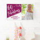 Guión de 60 y fabuloso Foto Magenta Cumpleaños 60 Banner de fiesta. Tendencia de guión blanco y follaje blanco con una foto personalizada en un color magenta rojo intenso y chic. Haz un telón de fondo de cumpleaños 60 para ella. Personaliza con el nombre y la edad y agrega tu foto al modelo.