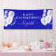Para una fiesta de cumpleaños glamurosa y femenina del 21 (o de cualquier edad). Un fondo azul real. Decorado con globos blancos. Personalice y agregue un nombre y una edad de 21 años. Letras blancas. El nombre está escrito con un guión moderno de estilo con letras a mano con toques. Para que los cambios sólo eliminen el nombre del ejemplo, deje los espacios o la emoji delante y después del nombre.