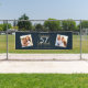 Celebra tu cumpleaños con estilo con este efecto azul, blanco y dorado magnífico banner contemporáneo elegante de decoración de cumpleaños de la tipografía. Un diseño moderno con texto de guión y gráficos en negrita. Cambie el número a personalizar. Parte de una colección. El número se puede personalizar, ideal para las celebraciones de cumpleaños 21, 30, 40, 50, 60, 70, 80, 90, 100.