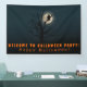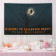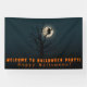 Pancarta de la fiesta de Halloween con una bruja, una destacada luna y un espeluznante árbol. Opción para incluir un mensaje personalizado para ese toque especial extra.
