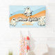 ¡Tres Espíritus! Pancarta retro groovy Ghost Halloween de tercer cumpleaños fiesta en azul y naranja. Fantasma de cumpleaños Spooktacular.