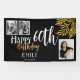 Happy 60th Birthday Gold Foliage 3 Photo Backdrop Banner. Celebrate a milestone in style with this Elegant Black & Gold 60th Birthday Banner. Featuring a sophisticated black background adorned with luxurious gold foliage, this design adds a touch of class. Personalized with three photos, this banner is perfect for making the guest of honor feel extra special. Make turning 60 unforgettable with this timeless and chic design!