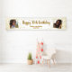 Celebrate a big birthday with this banner featuring 2photos of the birthday girl/boy, 2 custom text headlines, all set against a white background accented with faux gold glitter confetti sparkles. Fun and festive perfect for any birthday celebration. (This is an extra long banner - check out our collection below for smaller banners with 3 photos.)