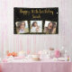 Celebrate a big birthday with this banner featuring 3 photos of the birthday girl/boy and the birthday girl's name, all set against a black background accented with faux gold glitter confetti sparkles. Fun and festive perfect for any birthday celebration.