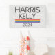 ¡Una bandera del orgullo LGBTQ moderna y retro que apoya la campaña de Kamala Harris y Mark Kelly en las elecciones de 2024! Presenta colores de fondo y letras llamativas perfectas para una convención, manifestación o evento.