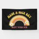 A pro-democracy banner with a retro snarky style that you can hang at your home or work! Rainbow, daisies and text in classic 70s retro color palette. Text: Have a nice day. Not you ICE.