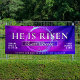 The large, elegant “HE IS RISEN” headline creates strong visibility from a distance, while the stylish framed “Easter Sunday” script adds a refined touch. With dedicated space for your service date, time, church name, and website, this layout is perfectly structured for both outdoor display and indoor sanctuary backdrops.