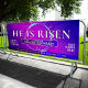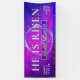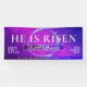 Make a bold and inspiring statement this Resurrection season with this vibrant He Is Risen Easter Church Banner. Designed with a striking purple and pink gradient background, geometric texture accents, and a powerful crown of thorns centerpiece, this banner beautifully captures the message of victory, hope, and new life in Christ.