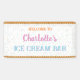 Personaliza esta pancarta de helados blancos con tu propio dicho. Hay tres líneas para cambiar o personalizar para cambiar las líneas y el tipo de letra. En el interior de la obra de arte hay otros dos colores de gofre o hacen que el patrón sea más grande o más pequeño en el cartel. Esta pancarta tiene un helado blanco con fondo de rociado con bordes de cono de waffle. Esta pancarta de helados es genial para tu fiesta de cumpleaños o una ducha de novia.