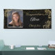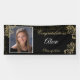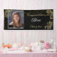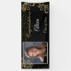 Elegante y femenino banner con purpurina dorada brillante, esquinas decorativas y confeti. Personaliza para usar en Sweet Sixteen, Bat Mitzvah, Quinceañera, Aniversario y Compromisos, solo cambia el texto. Todos los elementos de diseño se pueden mover y redimensionar para adaptarse a la mayoría de los tamaños de banner. El color de fondo negro se puede cambiar a su gusto.
