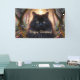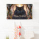 Lona Hermoso Gato Negro Fluffy con Ojos de Oro Cumpleañ