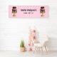 Banner de negocios con una deliciosa tarta de fiesta en capas. Este pastel de tres pisos está adornado con perlas. Los colores incluyen oro rosa, magenta y oro. Diseñado con un gradiente brillante para el brillo y la festividad adicionales.