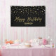 Este sencillo diseño de banner de cumpleaños incluye elegantes letras de guión "Cumpleaños feliz" con fondo de confeti de forma hexagonal. Decoración fiesta perfecta para una fiesta de cumpleaños moderna de temática negra y dorada. En mi tienda BaraBomDesign hay más invitaciones y suministros de fiesta a juego.