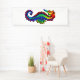 Arco de arcoiris, caballito de mar poligonal sobre fondo blanco. Tatuaje brillante.