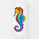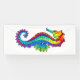 Arco de arcoiris, caballito de mar poligonal sobre fondo blanco. Tatuaje brillante.