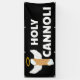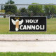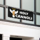 Un ilustracion de un cannoli angélico, acompaña el lema SANTO CANNOLI.
