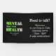 Un BANNER promocional apto para un Cafetería o Sesión para hombres motivadores para hablar. El diseño muestra las palabras SALUD MENTAL combinadas con HOMBRES QUE HABLAN SALUD. Hay un versículo de guiones del marcador de posición de Eclesiastes, que es PERSONALIZABLE, de modo que puede personalizar con su nombre, organización o texto de su elección. A mano derecha hay un texto de PERSONALIZABLE que puede cambiar con su propio mensaje de bienvenida o detalles. Parte de la colección MENTAL HEALTH. Los colores se pueden cambiar para adaptarse a su organización o a los colores corporativos haciendo clic en Personalizar Más adelante. También es útil si está organizando un evento especial de concienciación sobre la salud mental.