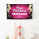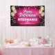 Fun banner sign for indoors or out, featuring festive gold metallic balloons on both sides of the design with sparkly, gold metallic confetti on a bold, vivid hot pink textured background for your personalized retirement party banner.