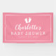 Cartel de fiesta de ducha de bebé personalizado con huellas adorables. Calidad interior y exterior. Elegante diseño rosa y blanco personalizado. Decoración acogedora con ilustracion de pies de bebé. Tipografía de escritura de pincel con borde de moda. Disponible en diferentes tamaños tanto dentro como fuera. Pequeñas formas medianas y grandes. Con o sin agujeros y ganchos. Color de fondo rosa y blanco o personalizable. Agregar nombre o mensaje de bienvenida a la plantilla. Accesorios de ducha para bebés con el logotipo de pasos para bebés. Diseño neutro de género para chica recién nacido o niño. Decoración personalizada para el recién nacido y los padres (mamá papá)
