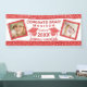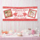 Personalice este cartel de la fiesta de graduación de imágenes con dos fotos y su texto personalizado para una decoración de purpurina falso rojo para la celebración de su graduación. Un borde de falso purpurina en rojo en la parte superior e inferior enmarca el centro de este signo fiesta donde el texto rojo en el fondo blanco permite que el mensaje aparezca de verdad. Dos fotos ligeramente anguladas se complementan con dos diseños más pequeños de tapón y tassel en un falso purpurina rojo que parpadean el año de graduación con un tipo de letra simple y negrita. Añade tu nombre de graduados y de secundaria o un mensaje corto en rojo y agrega tus fotos para una pancarta de una buena fiesta de graduación de personalizado que será la pieza central del fiesta.