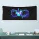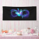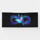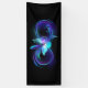 Símbolo infinito con mariposa mágica, morada brillante con alas transparentes, sobre fondo negro. Mariposa brillante.