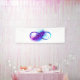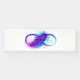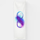 Símbolo infinito con una hermosa pluma pintada de color violeta y azul brillante sobre fondo blanco.