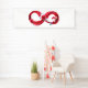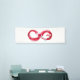 Símbolo infinito de flujo continuo de vino tinto vertiendo en vidrio de vidrio sobre fondo blanco.