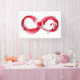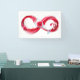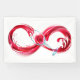 Símbolo infinito de flujo continuo de vino tinto vertiendo en vidrio de vidrio sobre fondo blanco.