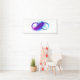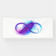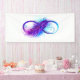 Infinity symbol with a beautiful feather painted in purple and blue bright colors on white background.